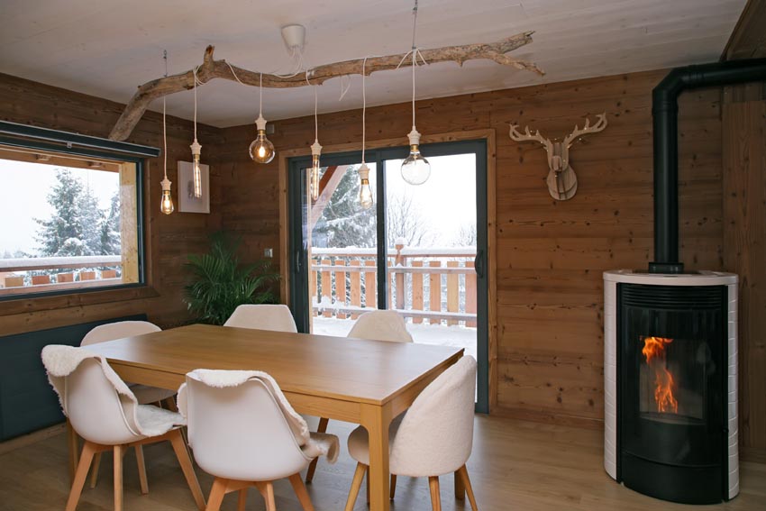 Le chalet et chaque détail ont été choisis pour se réunir entre amis ou en famille, fêter, partager, et rire. Ensemble. Il règne dans la pièce principale une atmosphère cosy.